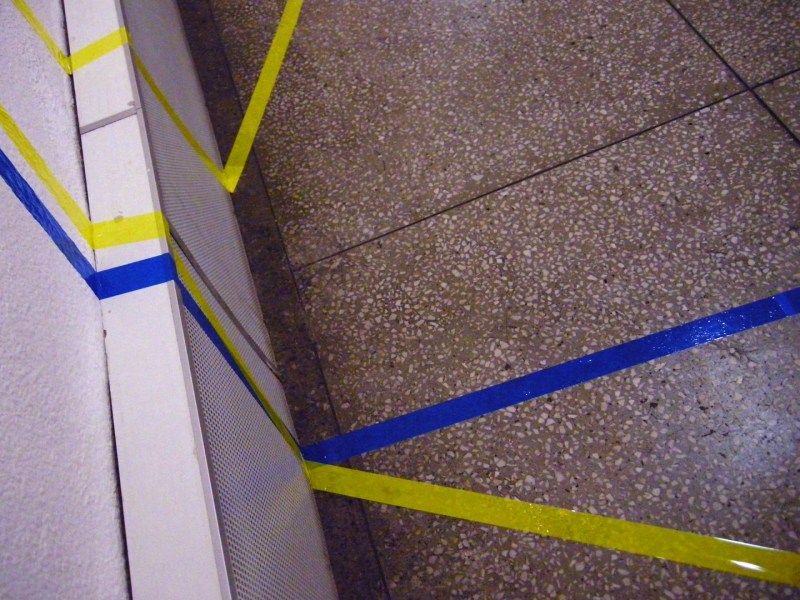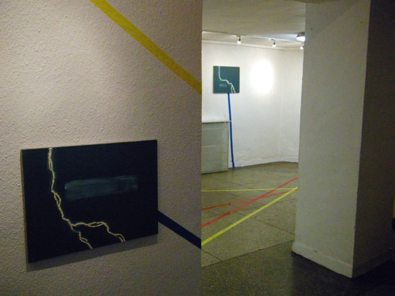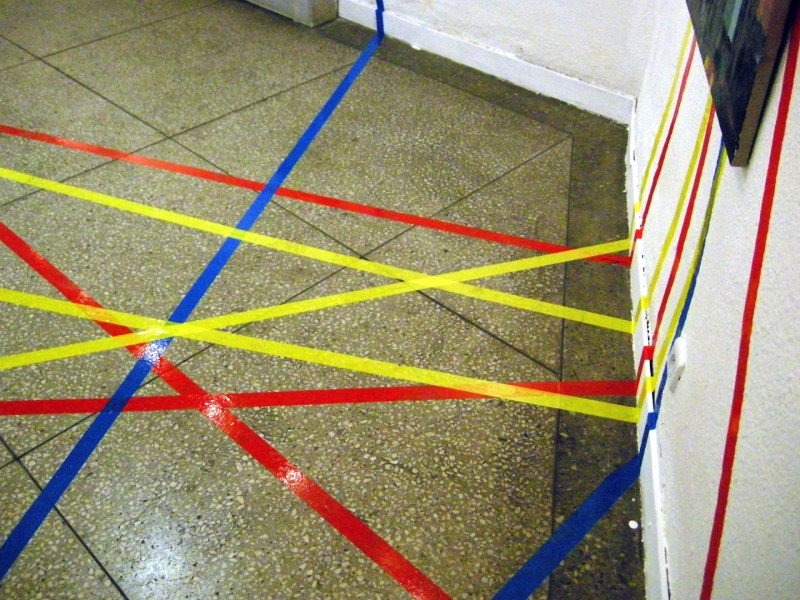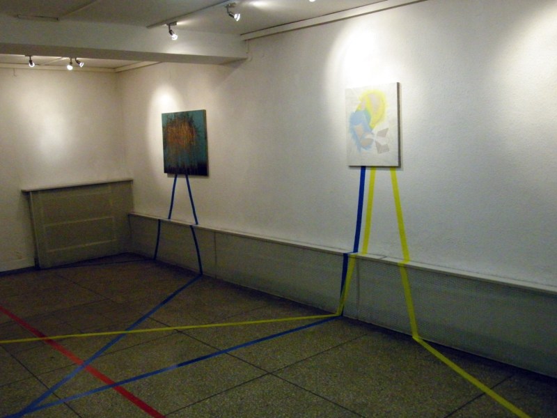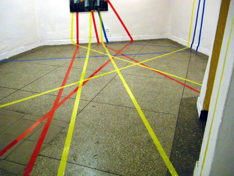 Works from my solo show Farbenlehre in Biala Podlaska have returned. On this occasion several photos of the exhibition and a word of commentary. Colours of the duct tape act as a substitute for words yellow, red and blue, hence the starry structure formed by them, is simultaneously a descripition of colour relations between works. It is a spilling of the desription of a show, into space of the exhibition.