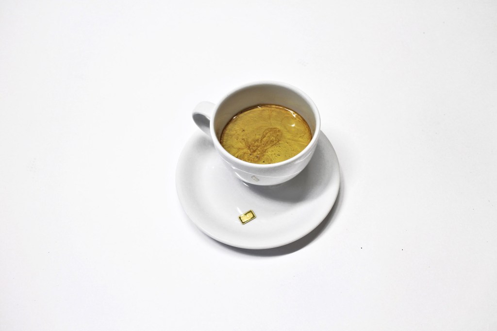 Złota kawa i kawałek złota opowiadają o technologicznej innowacji, która umożliwiła produkcję kawy o wyglądzie płynnego złota. Produkt ten natychmiast stał się jednym z najbardziej pożądanych towarów na rynku. Tym bardziej, że pojawił się w klimacie ekonomicznym gdzie ceny złota jako bezpiecznej przystani dla kapitału wystrzeliły w górę, podczas gdy świat pędził w rozkręcającej się spirali inflacyjnej.
