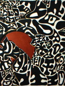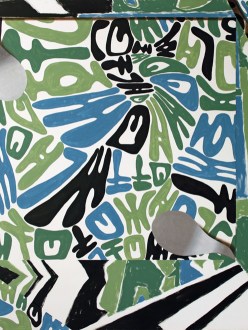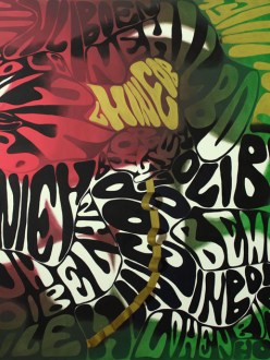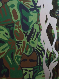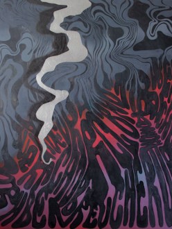 Stopić się z naturą. Wniknąć w tło parnej tropikalnej dżungli. Tak by pozostać niezauważonym, w środowisku gdzie mogą czyhać niebezpieczeństwa. A skoro kamuflaż, to strużka srebrnego dymu wylewa się z lufy karabinowej. Albo też może jest to dym, który daje ukojenie podczas postoju? Tym bardziej, że to mocno hipisowskie moro, takie które daje szansę na powrót do natury, i z nią symbiotyczne zespojenie. Albo jeszcze inaczej – cała ta opowiedziana historia, zarysowana w nierozpoznawalnym alfabecie jest rodzajem kamuflażu, […]