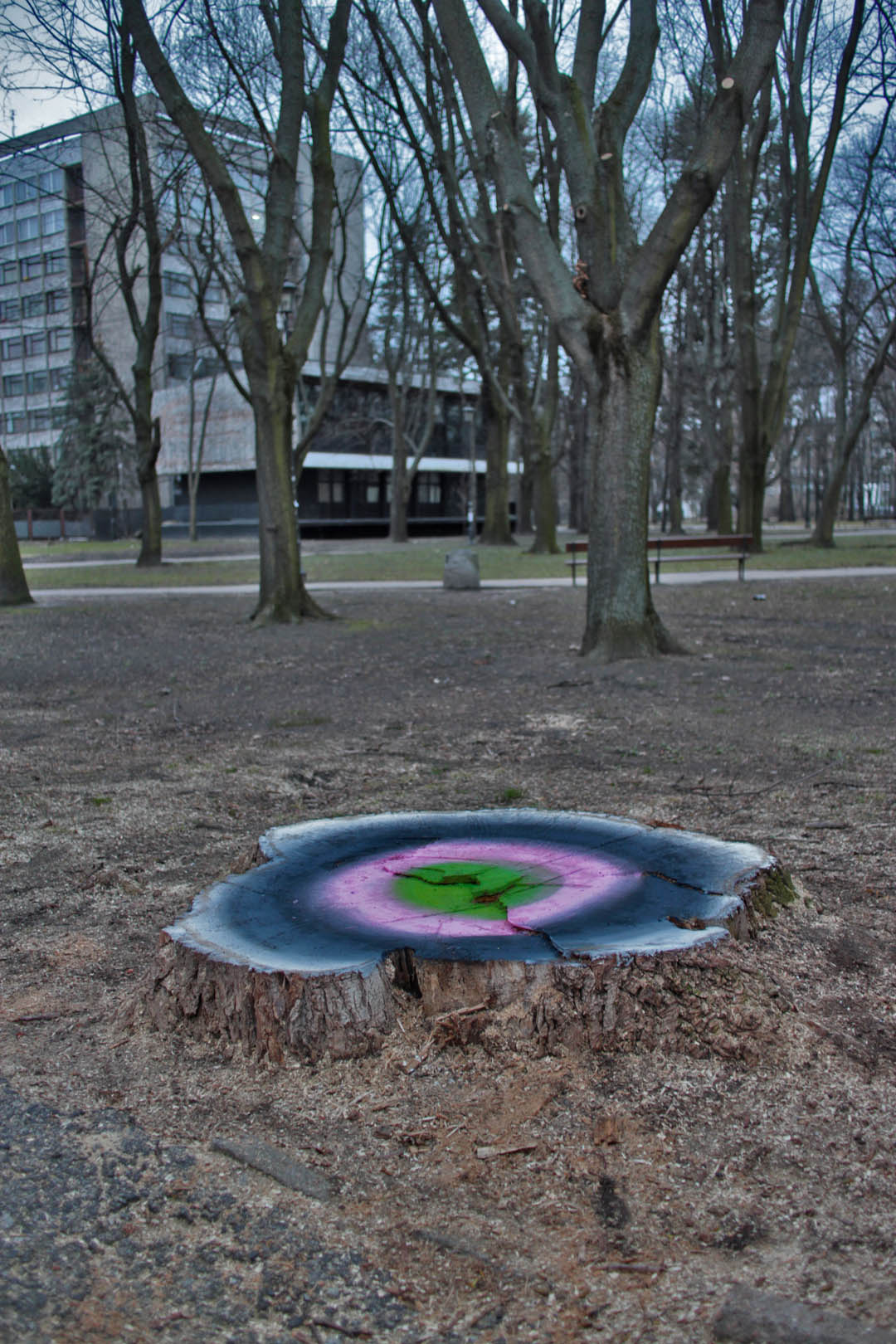infinite amount of logged trees, 2017, postpainting action, Warsaw