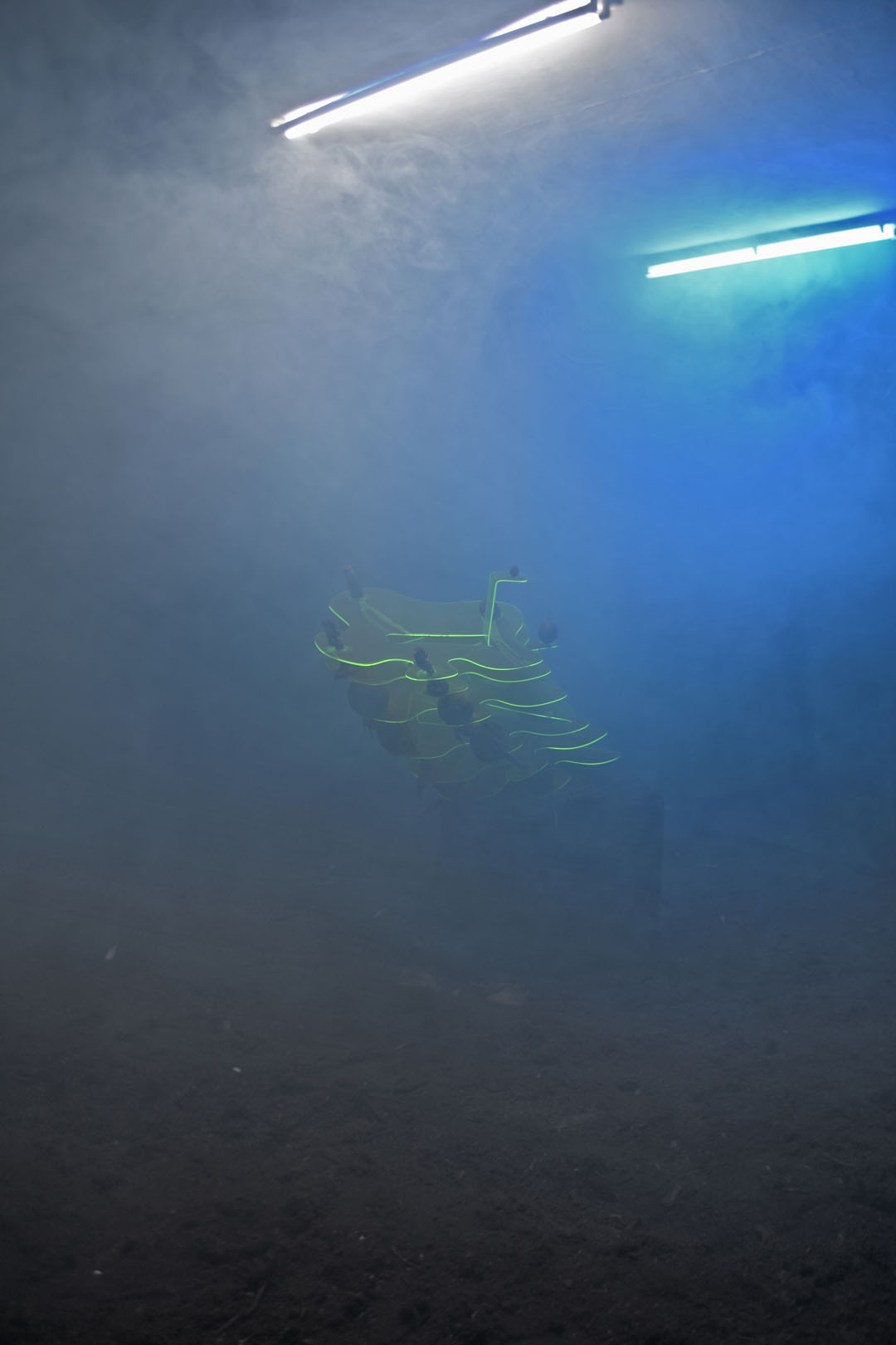 republika bananowa, 2018, environment zbudowany z rozkładających się owoców, pleksiglasu, sztucznej mgły