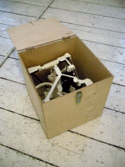 Kolega nakierował mnie podczas rozmowy na rzecz pozostającą na skraju widoczności. Wyszła ona z tła na przykładzie krzesła, które przez dłuższy czas używałem, a potem w przypływie emocji roztrzaskałem o ścianę. Następnie, jakby pragnąc się zrehabilitować wobec materii, która nagle przestała pełnić funkcję użytkową, postanowiłem ukryć swój ślad w krześle, nicując je. Efektem tej stolarki stał się kub, wynicowane krzesło wpisane w formę prostopadłościanu. Drewno, ze stanu użyteczności fizycznej przeszło do stanu użyteczności estetycznej, emocjonalnej i intelektualnej. Następną […]